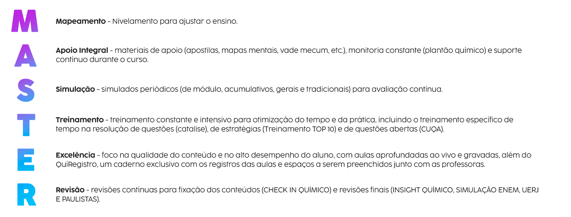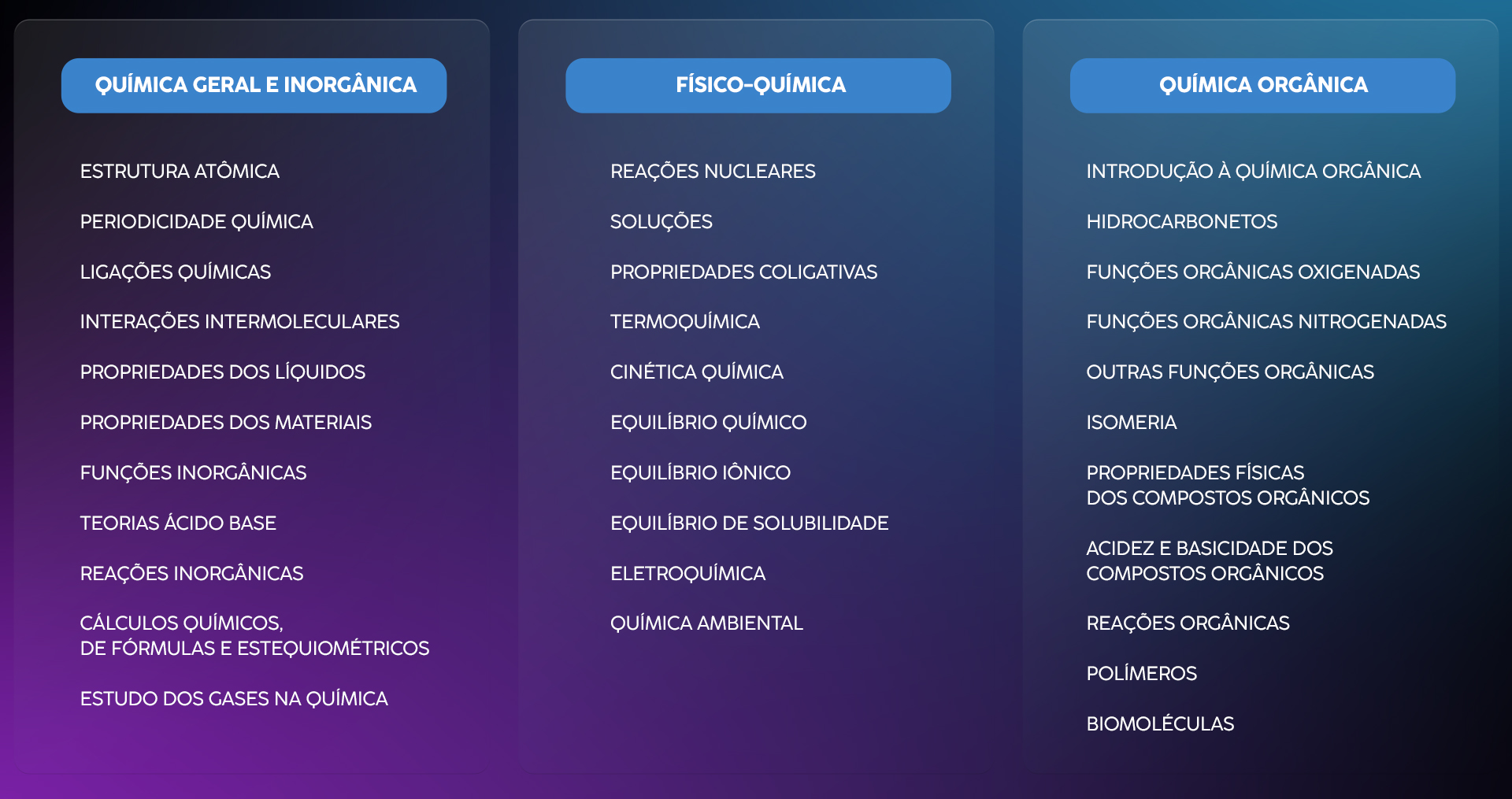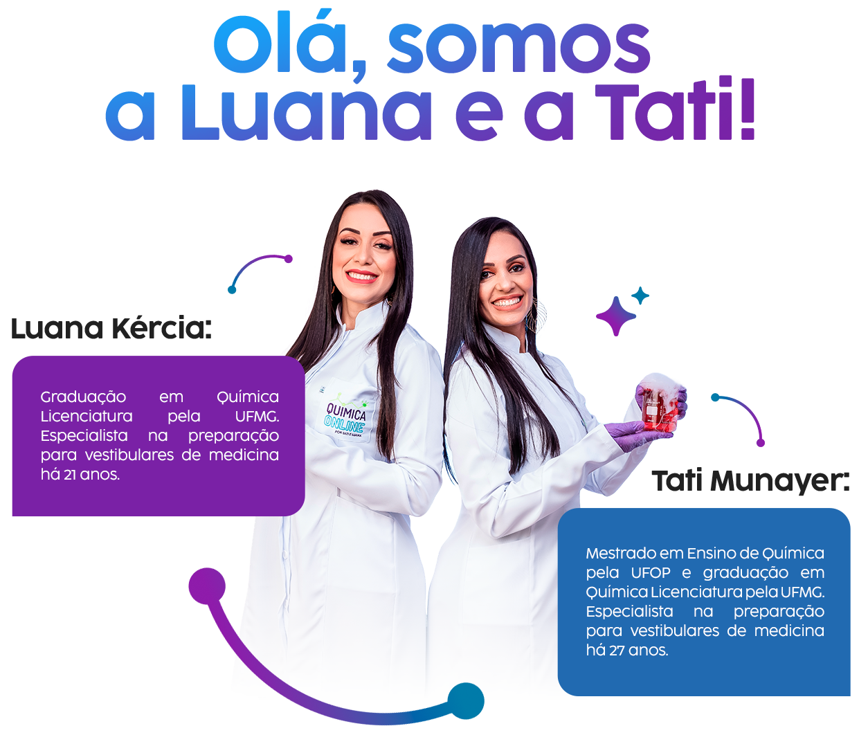 Donas de uma didática ímpar, Tati e Luana trabalham o conteúdo desde o básico até o aprofundado, de forma estratégica. Com o Química Online, a missão das professoras é ajudar os alunos a acertar mais de 80% das questões de Química e alcançar a sua tão sonhada vaga na universidade.